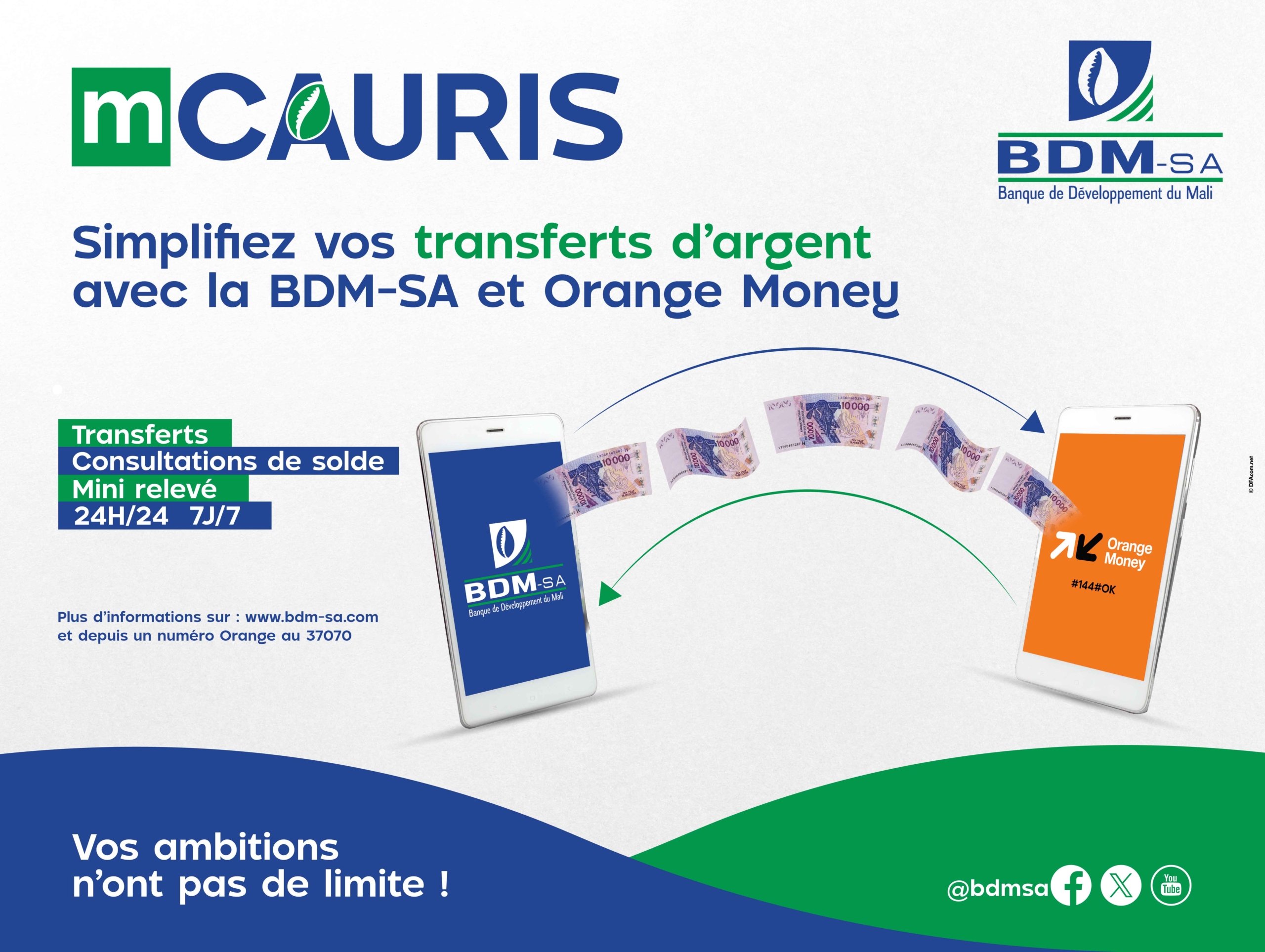 - Transférer de l’argent d’un compte Orange Money ou Moov Money vers un compte bancaire BDM-SA depuis un mobile.