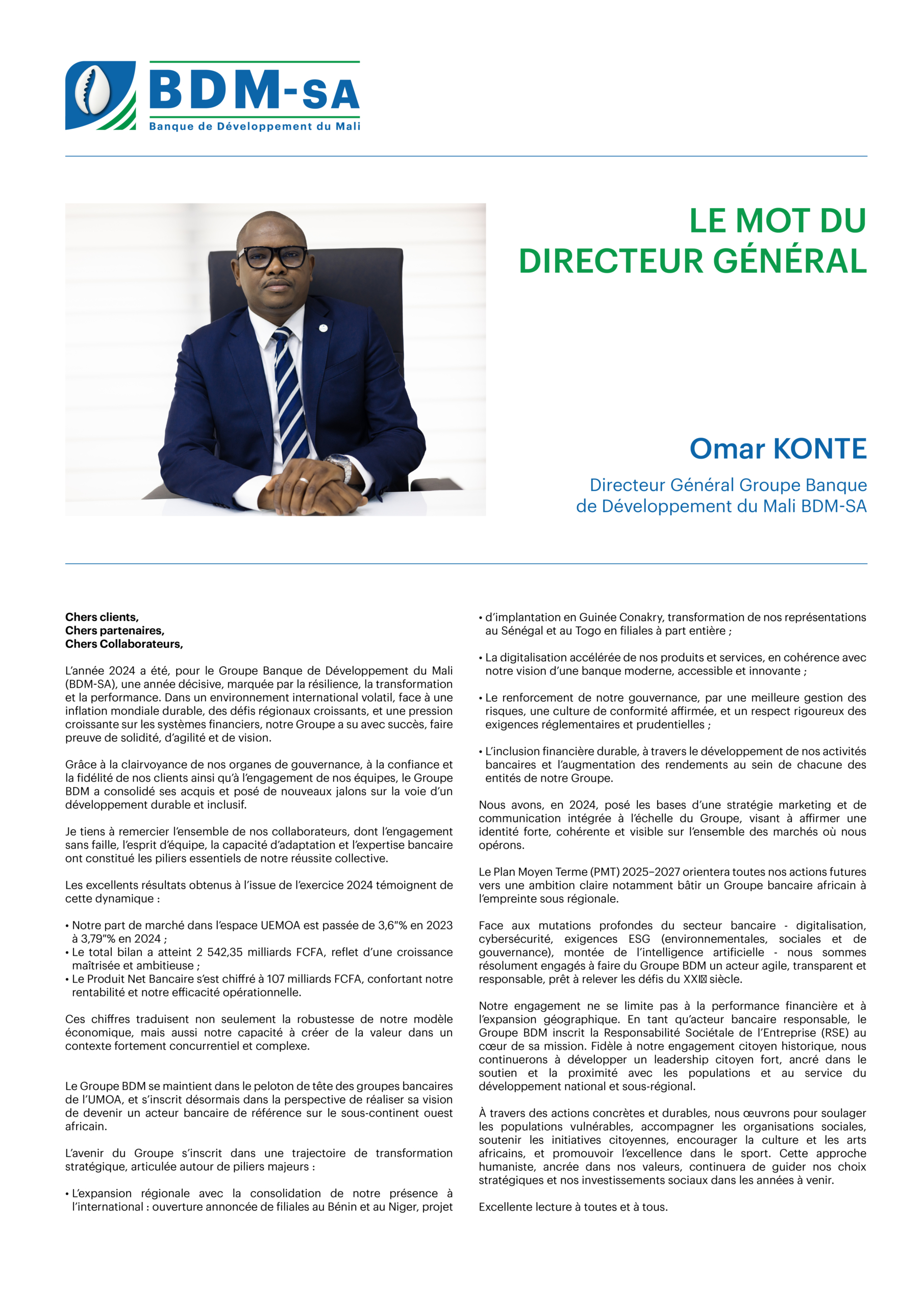Mot du Directeur Général