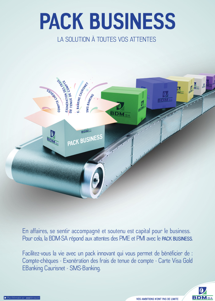 Il permet à ses adhérents de bénéficier des produits et services de la BDM-sa destinés aux entreprises. C’est une offre groupée de produits et de services bancaires permettant aux clients de couvrir un ensemble de besoins a un prix forfaitaire.